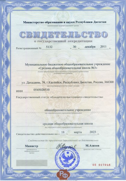 | Полное наименование образовательной организации* | Муниципальное бюджетное общеобразовательное учреждение "Средняя общеобразовательная школа №3 им.Гаджибекова А.И." |